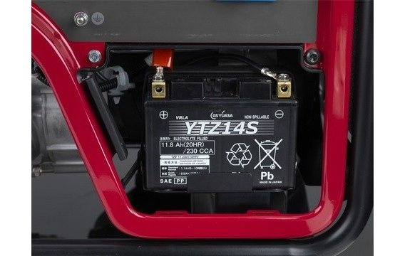 Rozrusznik elektryczny - oznacza wygodne uruchamianie agregatu EM5500CXS Honda za pomocą kluczyka. W przypadku rozładowania się akumulatora użytkownik zawsze może uruchomić agregat ręcznie. Rozrusznik elektryczny oraz automatyczne ssanie umożliwiają podłączenie do agregatu automatyki sterującej jego pracą podczas zaniku i powrotu napięcia w sieci elektroenergetycznej.